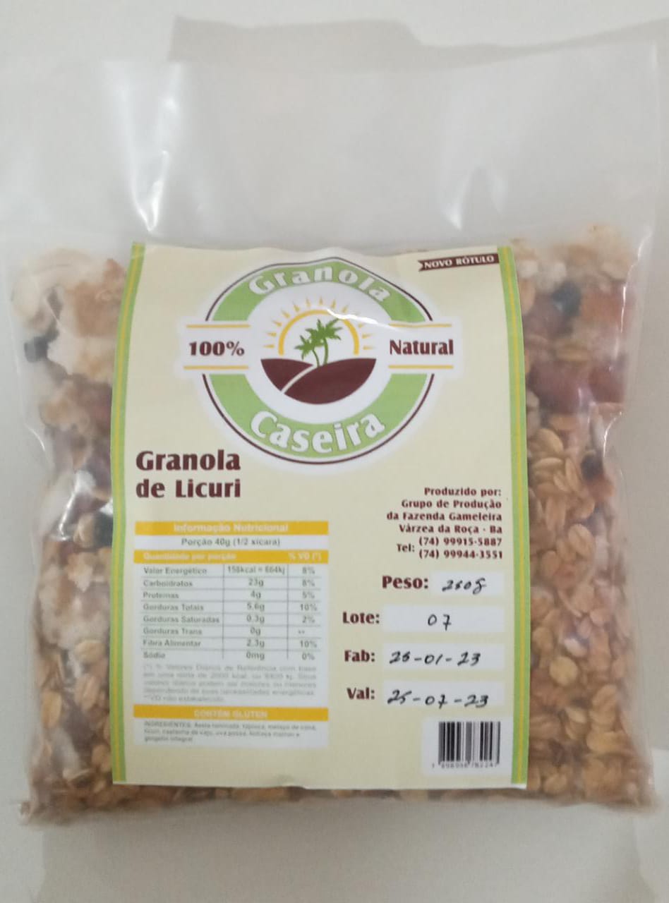 | História | O Grupo da Granola Caseira começou a produção da Granola, visualizando estabelecer uma forma inovadora, alternativa em beneficiar produtos nativos da caatinga, em especial o licuri e obter melhor faturamento com a comercialização do produto. |
