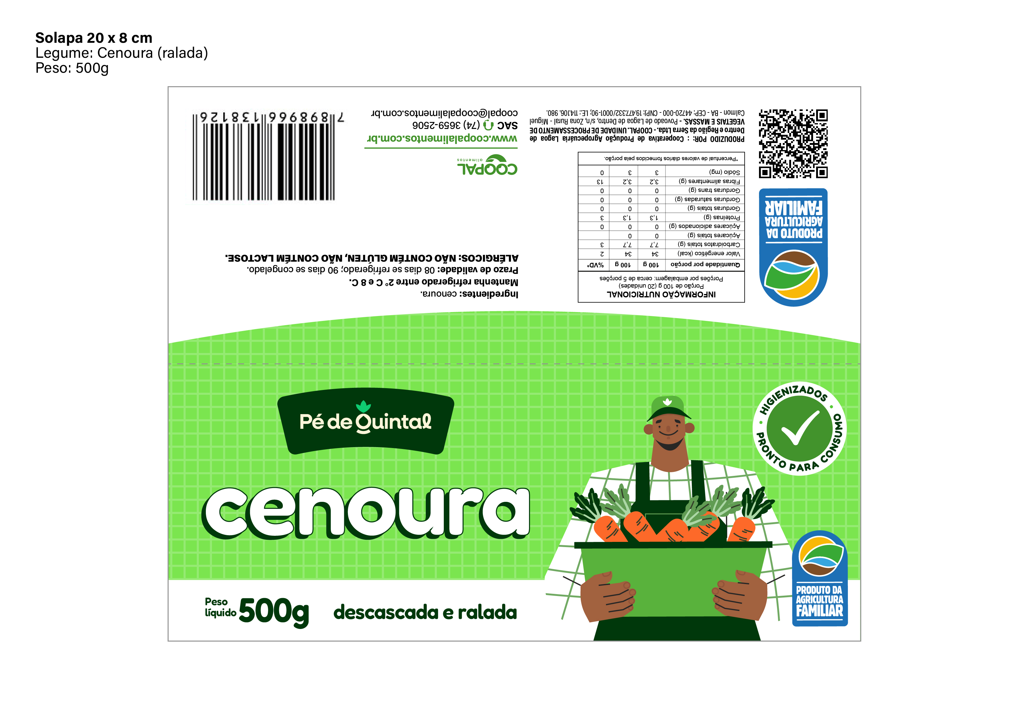 | História | Cenoura Ralada Pé de Quintal: Sabor e praticidade para o seu dia a dia Agradecemos a praticidade e o sabor incomparável da Cenoura Ralada Pé de Quintal! Cultivada com cuidado e amor em terras férteis, nossa cenoura oferece uma experiência gastronômica única. Já ralada e pronta para o consumo, a Cenoura Ralada Pé de Quintal é ideal para quem busca praticidade e sabor na cozinha. |