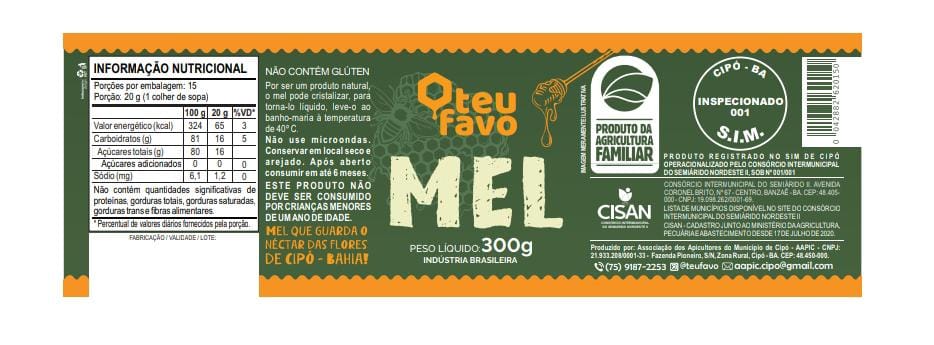 | História | Nos campos floridos de Cipó-BA, onde as águas termais fluem em terras de exuberante riquezas, um mel especial guarda em cada favo a essência do bem viver, o perfume das flores e a tradição da nossa agricultura familiar. Puro, dourado e saboroso, um verdadeiro presente da generosidade das abelhas e dos encantos da nossa natureza! |