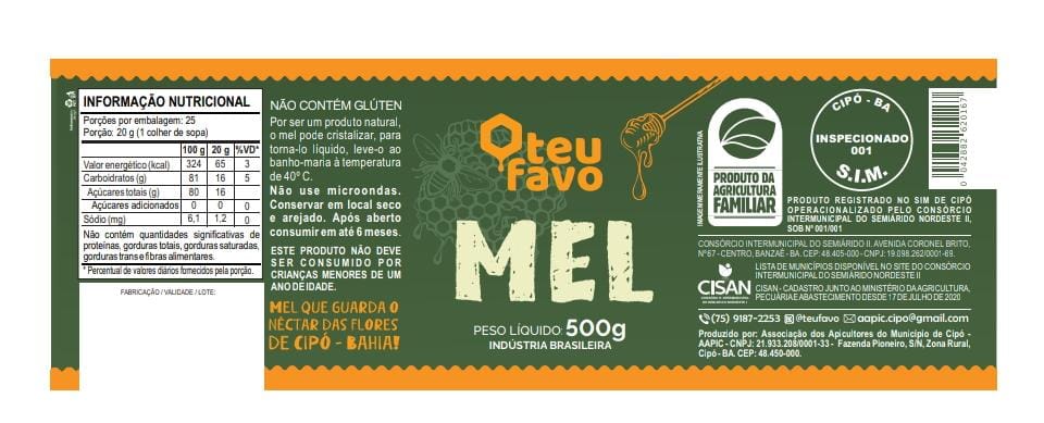 | História | Nos campos floridos de Cipó-BA, onde as águas termais fluem em terras de exuberante riquezas, um mel especial guarda em cada favo a essência do bem viver, o perfume das flores e a tradição da nossa agricultura familiar. Puro, dourado e saboroso, um verdadeiro presente da generosidade das abelhas e dos encantos da nossa natureza! |