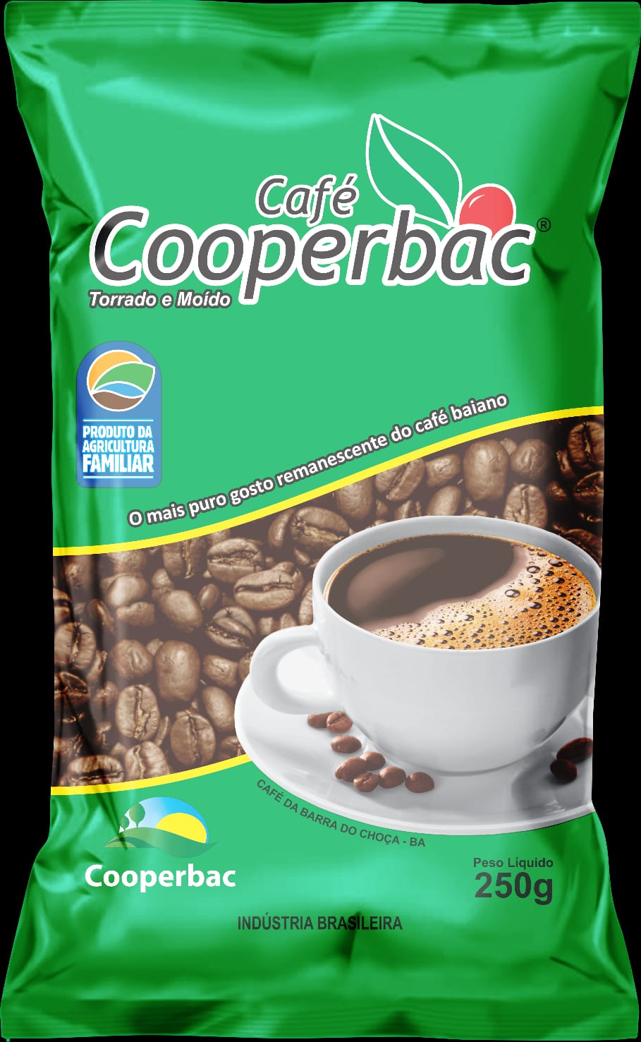 | História | COOPERBAC: Café 100% arábica, torrado e moído, de primeira qualidade, produzido no Território Baiano. Ideal para quem busca uma experiência mais refinada que o básico, com menos defeitos que os cafés comuns e uma entrada para o mundo dos cafés de maior qualidade. Características: 100% arábica, bebida boa, acima do tradicional, mas abaixo do gourmet; Aroma equilibrado, com amargor moderado e notas que podem lembrar chocolate e nozes; Embalado em envoltório metalizado, com peso líquido de 250g. O produto possui selo de certificação da Agricultura Familiar. |