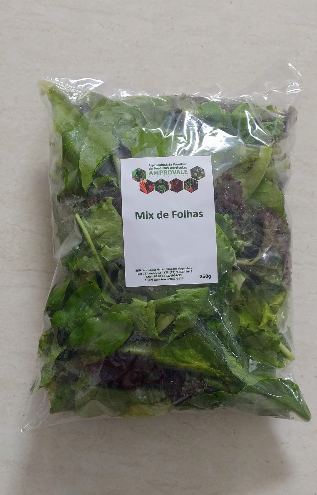 | História | As folhas (alface americana, alface crespa, alface crespa roxa, rúcula e espinafre) são cultivadas na Horta Comunitária da Associação Amprovale. |