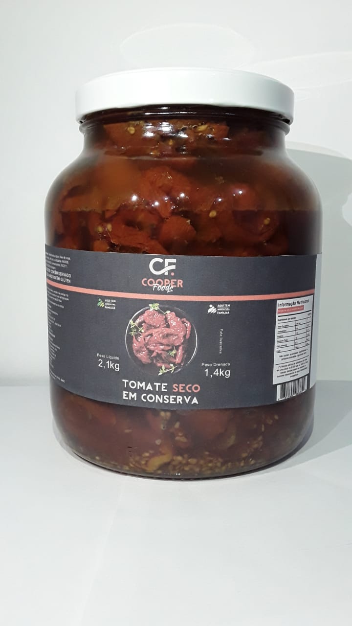 | História | O tomate é originário das Américas, espalhou-se por todo o mundo após a colonização pelos europeus. Apresenta tamanhos e cores variadas. O tomate seco nada mais é do que o próprio tomate fresco desidratado e concentrado. A produção consiste na secagem ao sol de tomates maduros selecionados. Pode ser consumido em saladas, com queijos, em pratos como macarrão, arroz, risoto, pizzas, sanduíches, patês, no preparo de molhos e em diversa aplicações. O tomate seco em conserva COOPERFOODS é embalado em diferentes embalagens e gramaturas. Embalagem de vidro com peso líquido de 2,1 kg, acondicionado em caixa de papelão com 6 unidades. Aqui existe agricultura familiar. |