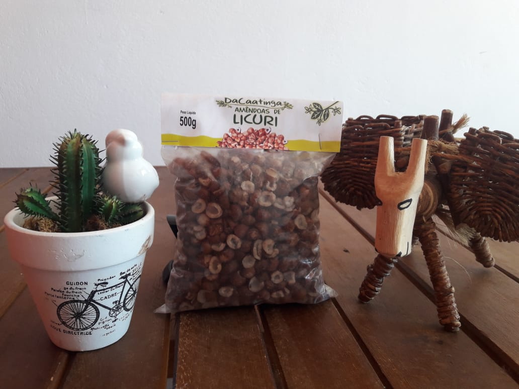 | História | LICURI COLETADO E SELECIONADO POR AGRICULTORES DA COMUNIDADE BIZAMUM, A AMEDOA É SELECIONADA E EMBALADANA CASA DO LICURI. |